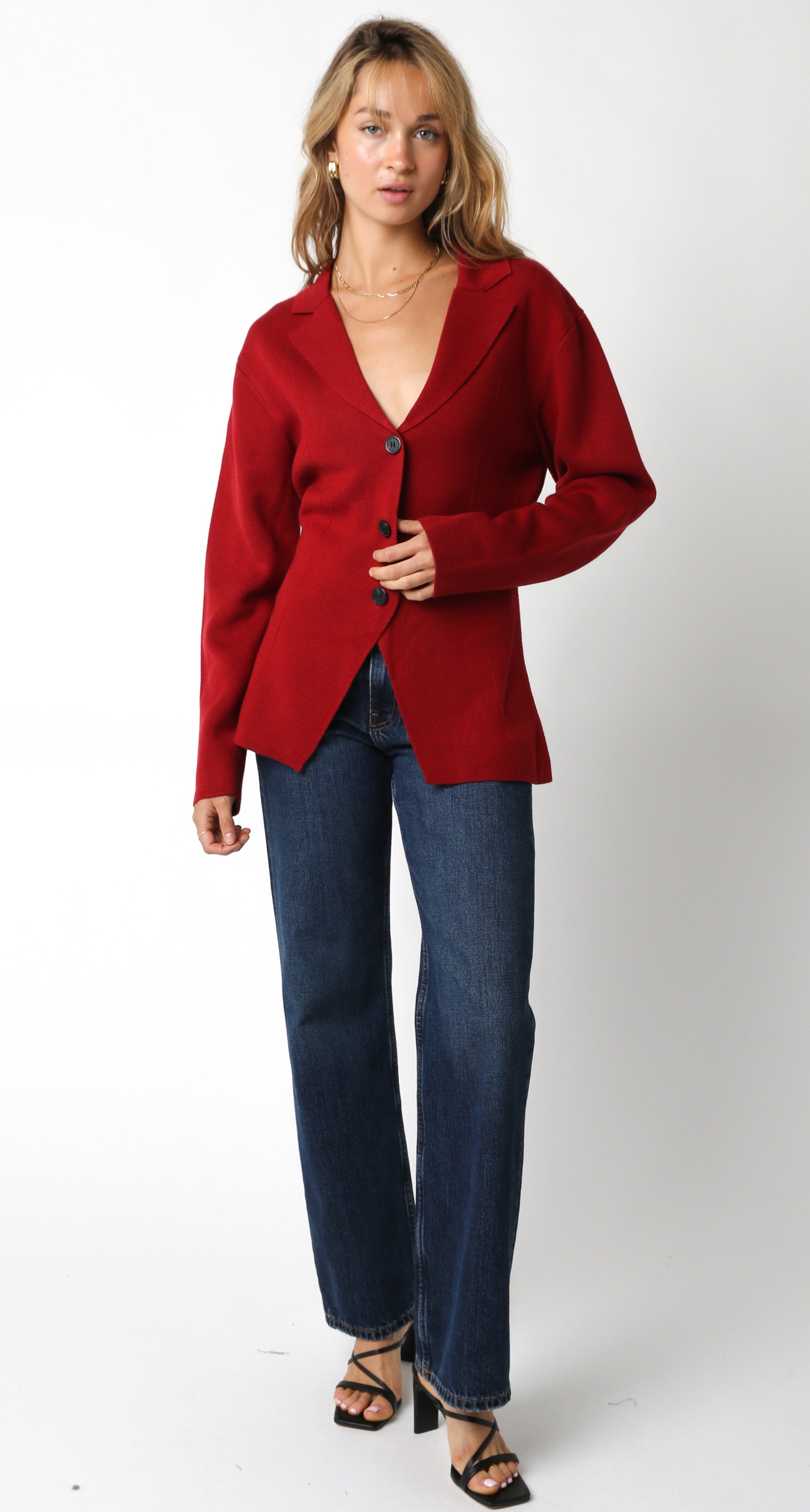 This versatile piece effortlessly elevates everyday outfits. Whether you’re dressing up for a meeting or adding a polished touch to your casual wear, the Claire Sweater Blazer is your go-to for chic, comfortable style.