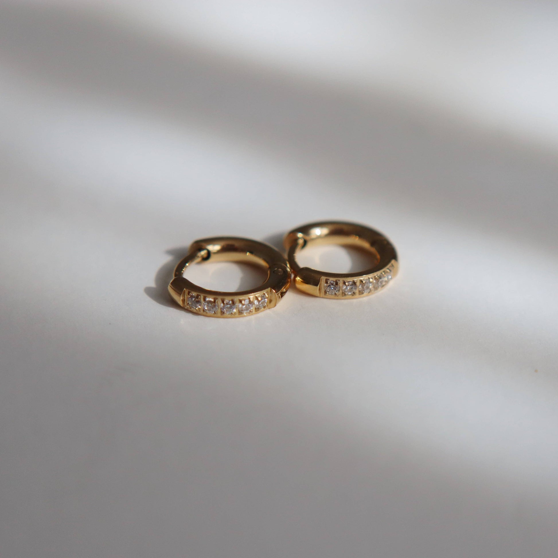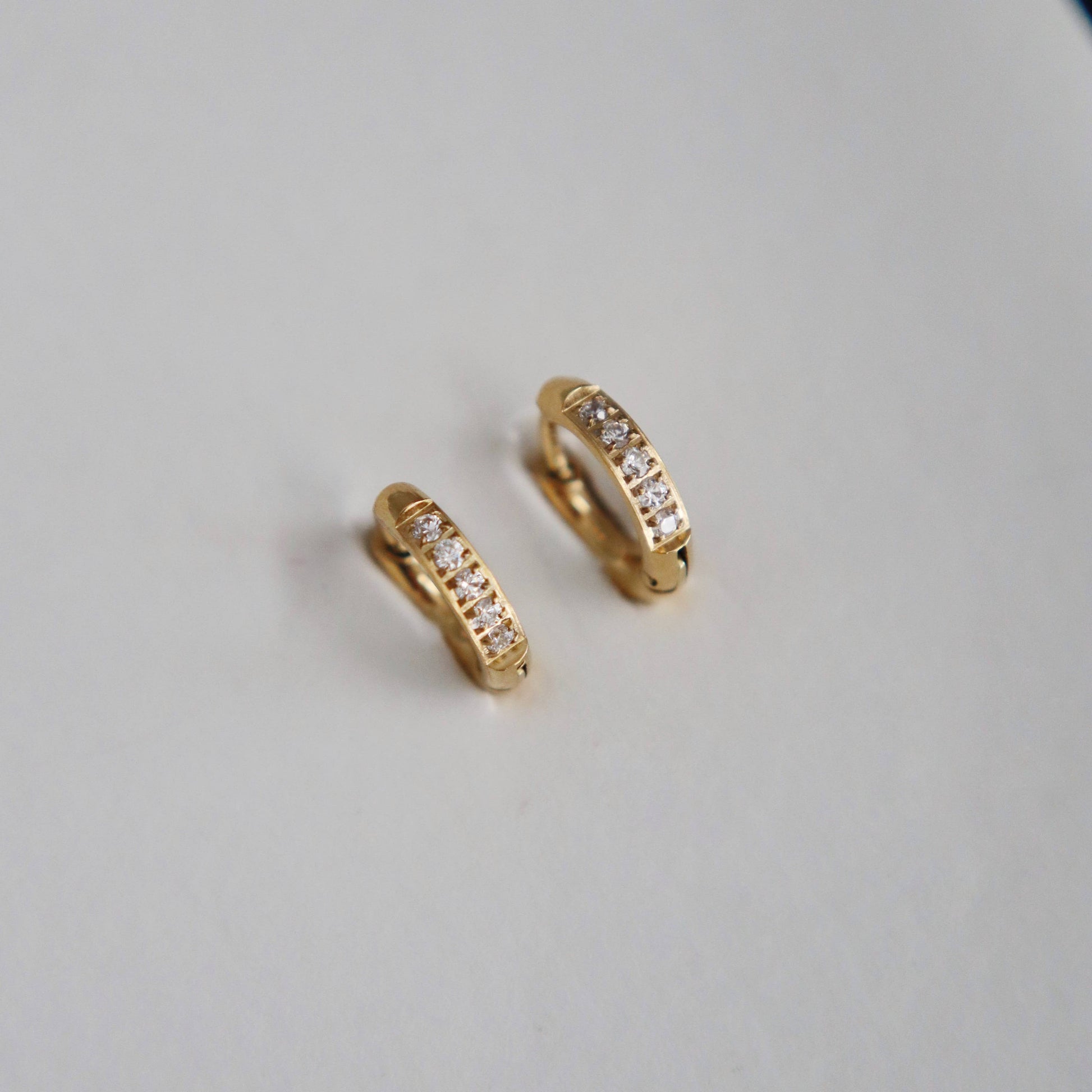 Lightweight, comfortable, and stylish, perfect for everyday wear. Small, dainty huggies feature 5 small cubic zirconia stones