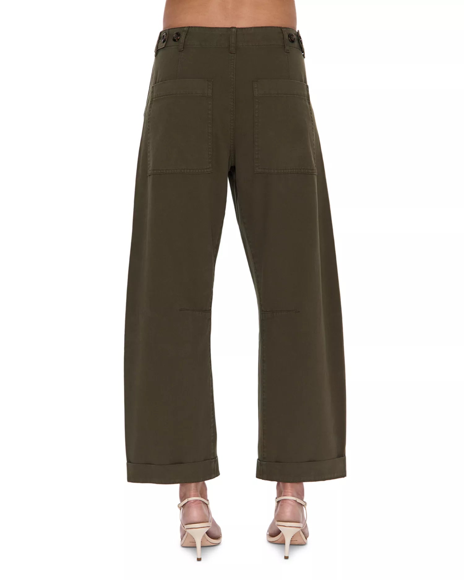 The utility pant with a twist. Tori delivers a signature bowed leg silhouette with utilitarian-inspired details and a cropped 26 1/2" inseam that hits at the perfect ankle length. The relaxed fit through the leg creates effortless proportions while functional details add purposeful style. Crafted from 100% cotton that feels substantial yet comfortable for all-day wear. Sequoia is the perfect fall deep olive hue.